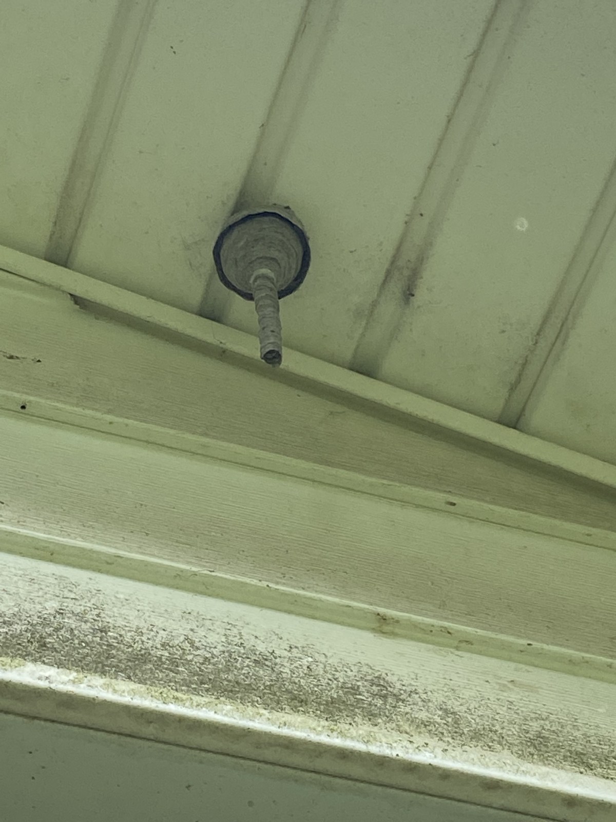 May 2022, Scioto County, Ohio. This is a new bald-face hornets (Dolichovespula maculata) nest. It contains only the new queen, which was hatched late last summer and survived the winter. The long tube on the bottom is the only entrance and provides some protection against predators and parasites. Once the first workers hatch, all female, they will chew off the tube and begin to enlarge the nest while the queen stays home and lays eggs